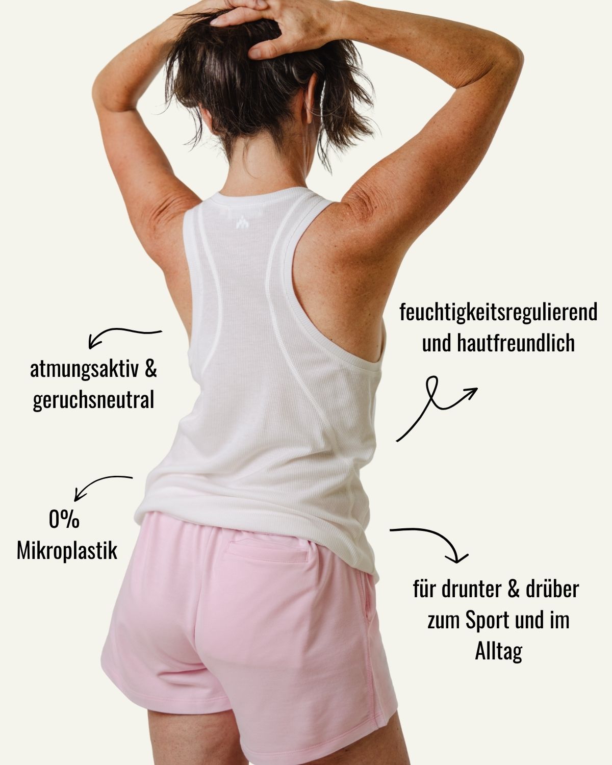 Dank der natürlichen Eigenschaften von Wolle wird Feuchtigkeit effektiv vom Körper wegtransportiert. In Kombi mit dem glatten, seidenähnlichem Lyocell sorgt das Top für eine optimale Temperaturregulation, sodass du auch bei intensiven Aktivitäten kühl und trocken bleibst.